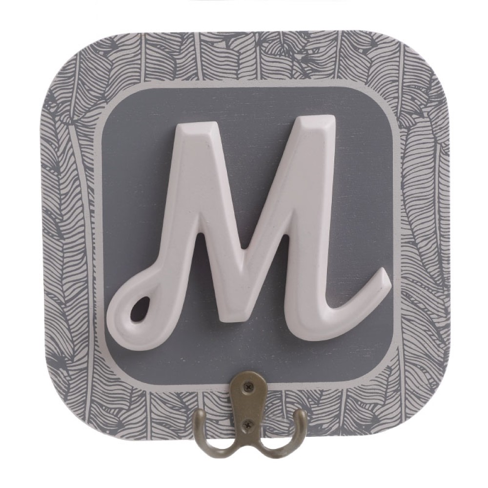 Ξύλινη Κρεμάστρα "M", σε ροζ/γκρι χρώμα. - 19cm x 2cm x 19cm