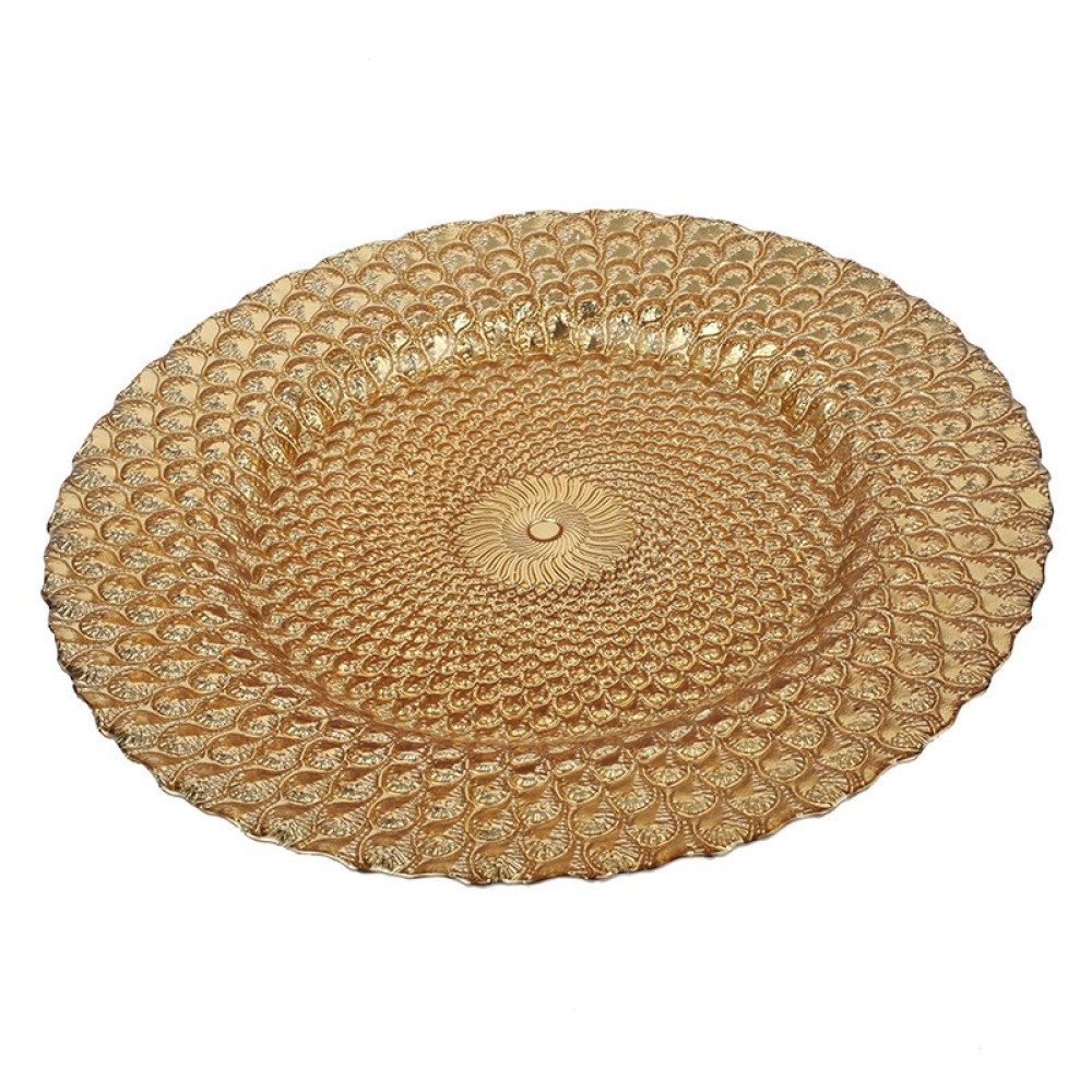 Πιατέλα διακοσμητική γυάλινη χρυσή - 33cm x 33cm x 2cm