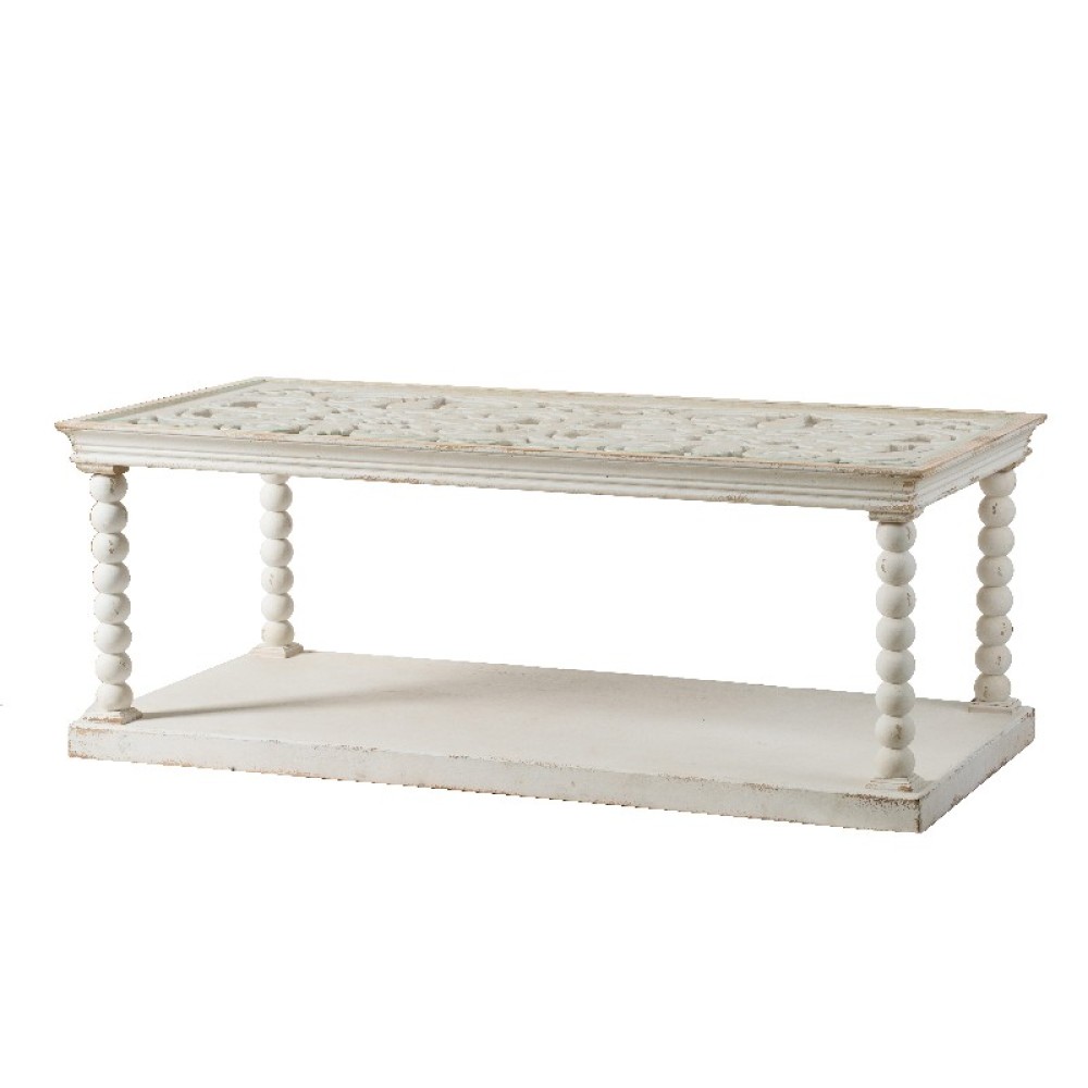 Τραπέζι σαλονιού ξύλινο με σκαλιστό καπάκι και γυαλί - 122cm x 61cm x 47cm
