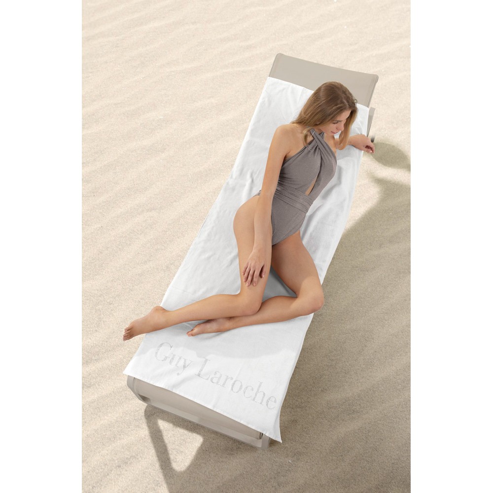 Πετσέτα θαλάσσης / πισίνας μονόχρωμη με το λογότυπο του οίκου Guy Laroche Paris φτιαγμένο από λαμπερά crystals. Κατασκευασμένη από 100% βαμβάκι. Διάσταση 80x170εκ.