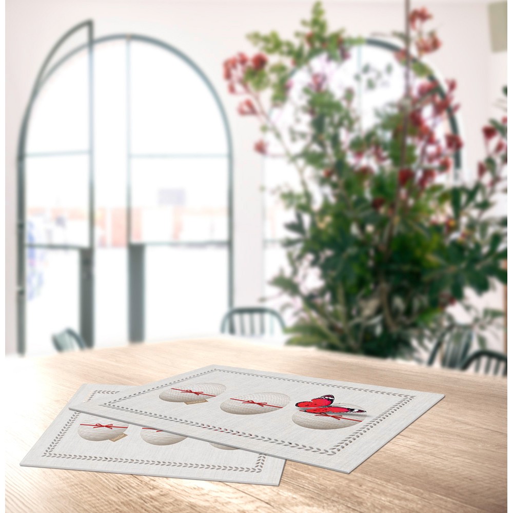 Γιορτινή διάθεση στο πασχαλινό τραπέζι σας με τα σουπλά διπλής όψεως της Saint Clair Paris. Κατασκευασμένα από 100% polyester με ειδική επεξεργασία αδιαβροχοποίησης για να καθαρίζονται εύκολα και να μην λεκιάζουν. Η αναγραφόμενη τιμή αφορά ανα τεμάχιο. Τα σουπλά μας είναι διαθέσιμα για αγορά ανά 4 τεμάχια. Διάσταση 45x33εκ.