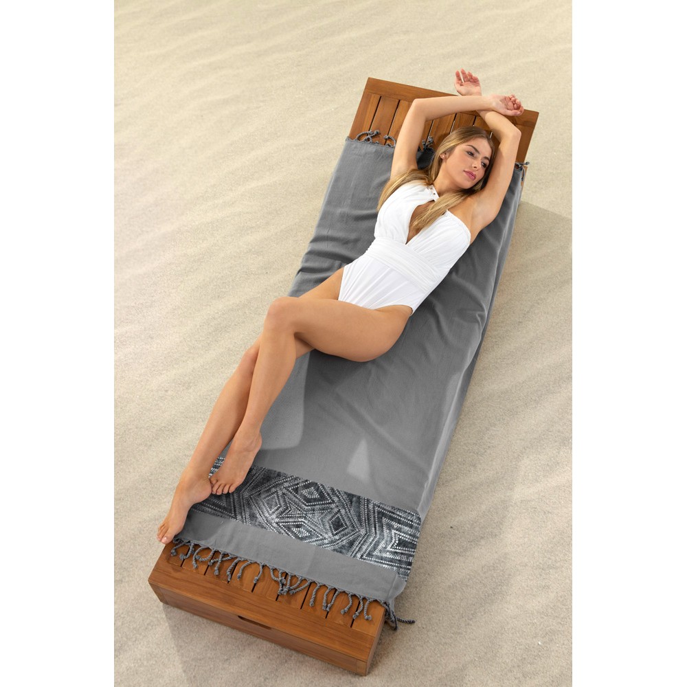 Πετσέτα θαλάσσης / πισίνας μονόχρωμη με μοντέρνο σχέδιο που μπορεί να φορεθεί και ως παρεό. Κατασκευασμένη από 100% βαμβάκι, απορροφητική, ελαφριά και εύκολη στην μεταφορά. Διάσταση 90x170εκ.