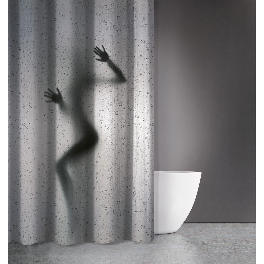 Υφασμάτινη κουρτίνα μπάνιου υδατοαπωθητική της εταιρίας Saint Clair Paris. Στεγνώνει γρήγορα και διαθέτει κρίκους για εύκολη τοποθέτηση. Σχέδιο σκιά γυναικείας φιγούρας.