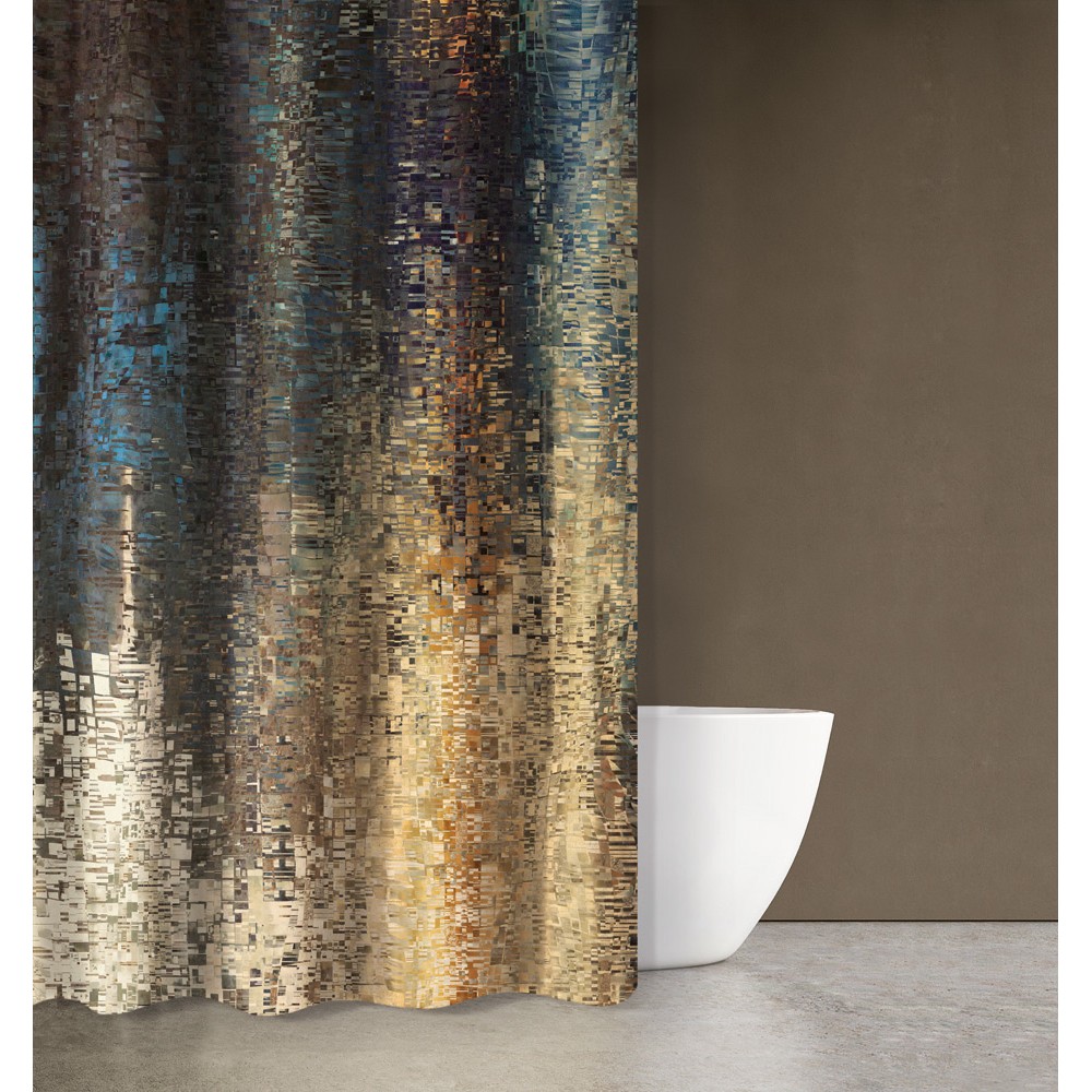 Υφασμάτινη κουρτίνα μπάνιου υδατοαπωθητική όπου στεγνώνει γρήγορα. Διαθέτει κρίκους για εύκολη τοποθέτηση. Αφαιρετικό digital printed σχέδιο από την Saint Clair Paris.