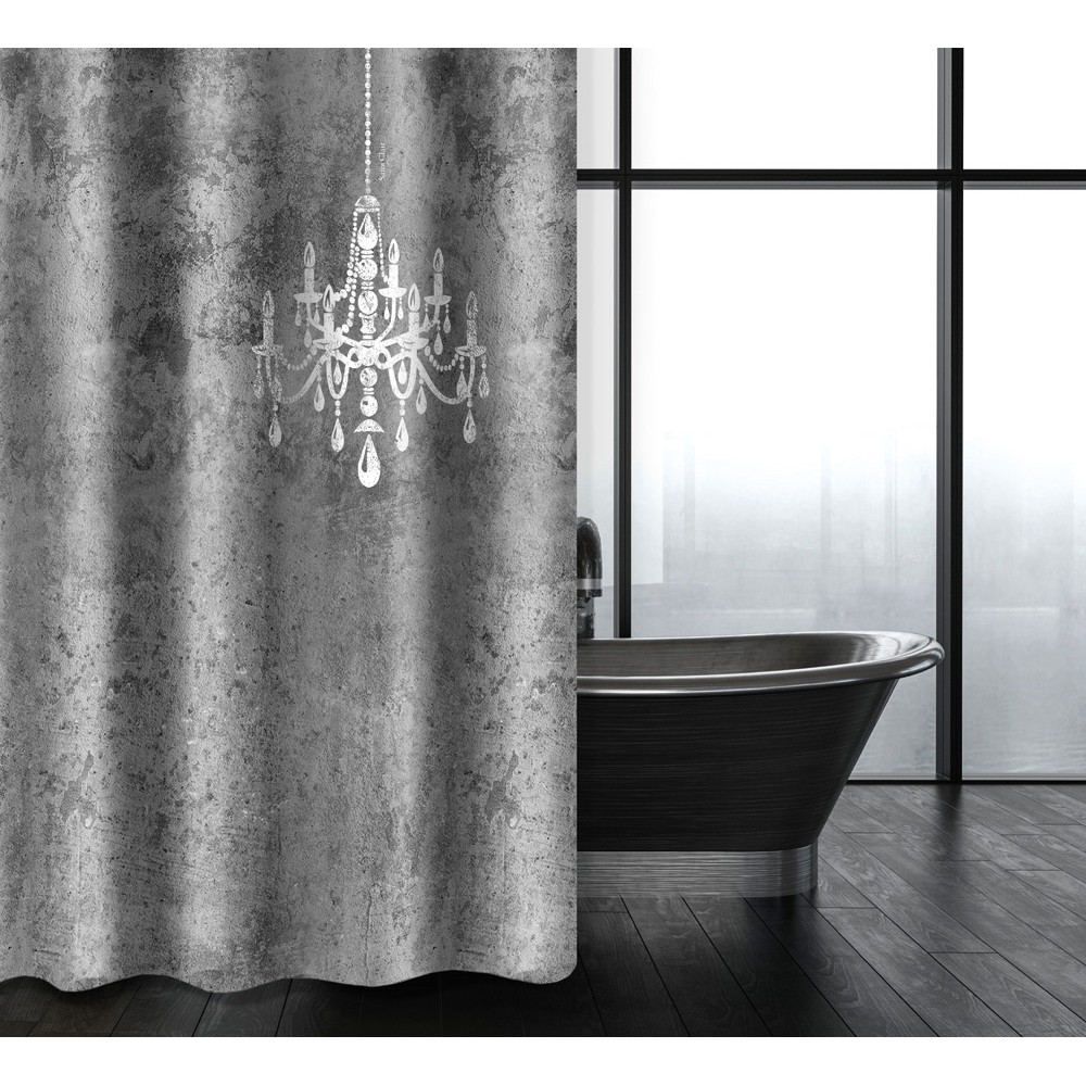 Κουρτίνα Μπάνιου Abstract Des 116 Anthracite με Κρίκους