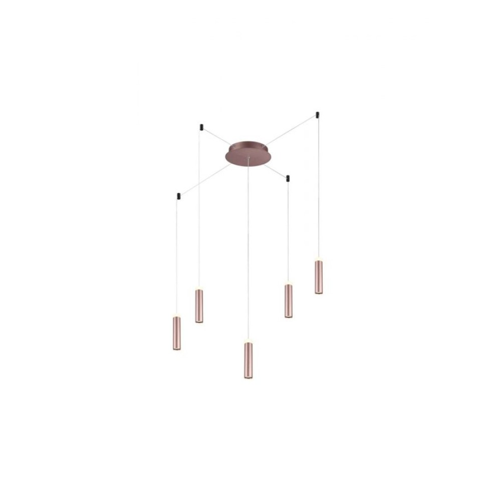 Κρεμαστό πολύφωτο κατασκευασμένο από αλουμίνιο, ακρυλικό και μεταλλική βάση, σε καφέ ματ απόχρωση και φωτισμό πάνω-κάτω. Με καλώδιο ως και 4 μέτρα που επιτρέπει το σχεδιασμό αράχνης.