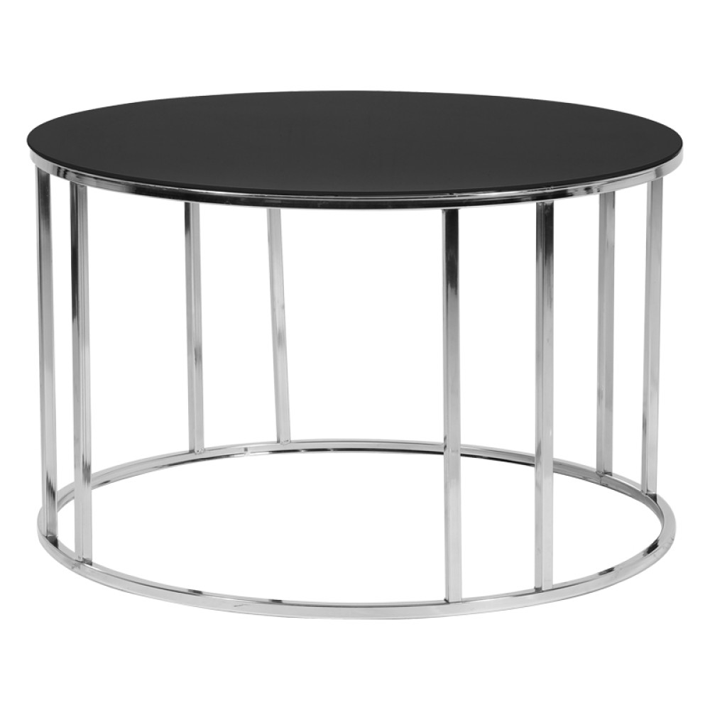 Τραπέζι σαλονιού μεταλλικό Φ75x45 INOX με μαύρο γυάλινο καπάκι - 75cm x 75cm x 45cm
