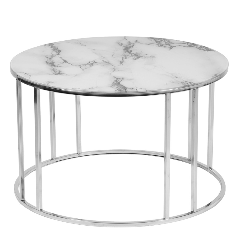Τραπέζι σαλονιού μεταλλικό Φ75x45 INOX με λευκό μάρμαρο καπάκι - 75cm x 75cm x 45cm