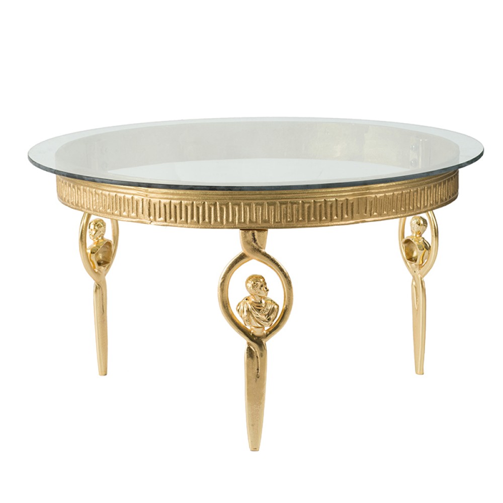 Τραπέζι σαλονιού χρυσό-γυαλί "ρωμαϊκό" - 120cm x 120cm x 49cm