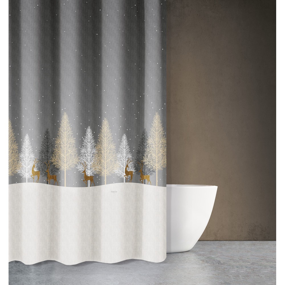 Κουρτίνα Μπάνιου Χριστουγεννιάτικη Des 416 Natural με Κρίκους 180x200