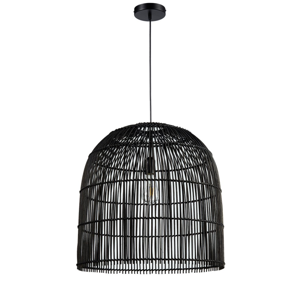Κρεμαστό μονόφωτο φωτιστικό κατασκευασμένο από rattan σε μαύρο χρώμα.