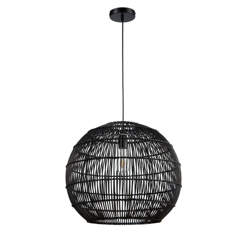 Κρεμαστό μονόφωτο φωτιστικό κατασκευασμένο από rattan σε μαύρο χρώμα.