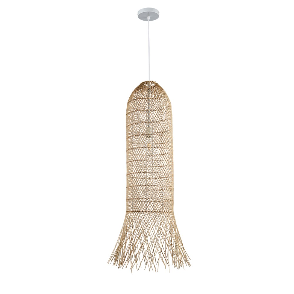 Κρεμαστό μονόφωτο φωτιστικό κατασκευασμένο από rattan σε φυσικό χρώμα.
