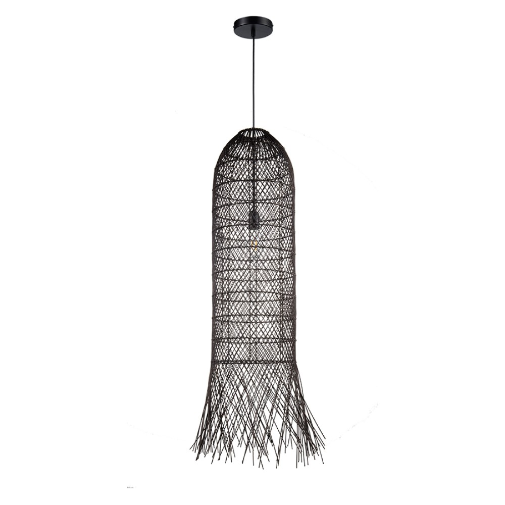 Κρεμαστό μονόφωτο φωτιστικό κατασκευασμένο από rattan σε μαύρο χρώμα.