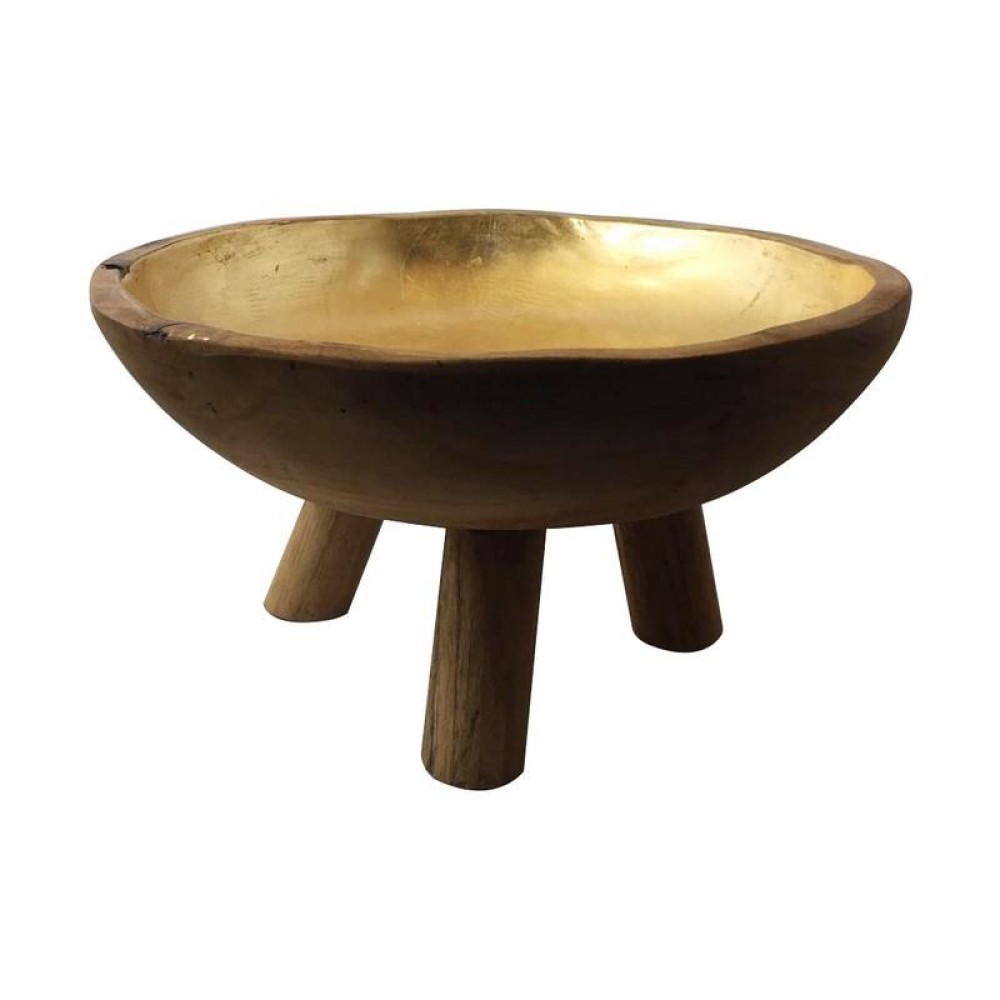 ARTEKKO Μπωλ Ξύλινο Teak (30x30x15)cm με Χρυσό Εσωτερικό - 30cm x 30cm x 15cm