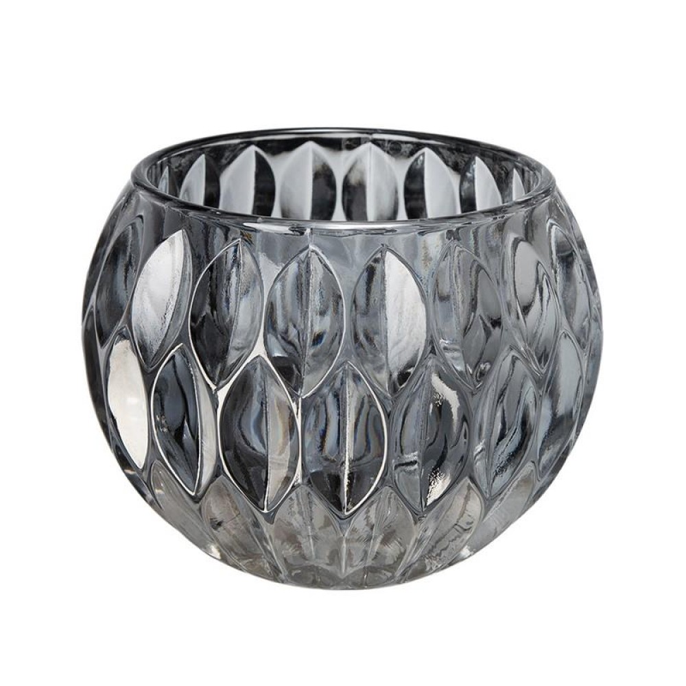 ARTEKKO Γκρι Κηροπήγιο 28x10x24 με Στρογγυλό Σχέδιο και Ανάγλυφο Σχέδιο - 15cm x 15cm x 11cm