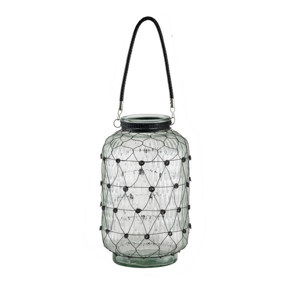 ARTEKKO Βάζο γυάλινο με μεταλλικό πλέγμα και δερμάτινη χειρολαβή - 22cm x 22cm x 38cm