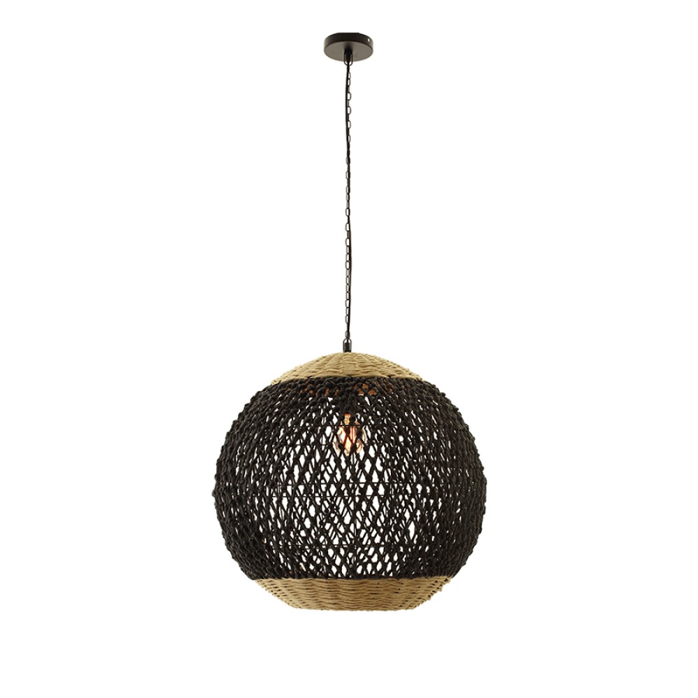 Κρεμαστό μονόφωτο φωτιστικό σε μαύρο και φυσικό χρώμα απο paper rope.Ύψος: 225 εκ.Διάμετρος: 61 εκ.Λαμπτήρες: 1 τεμ.Τύπος Λαμπτήρα: 1 x Ε27Watt: Max 40w