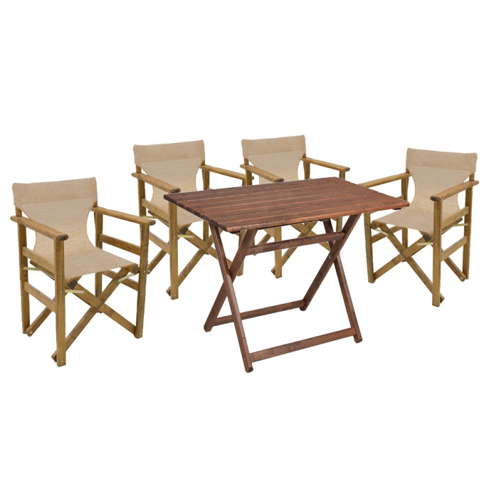 Tραπεζαρία Retto σετ 5τμχ μασίφ ξύλο οξιάς καρυδί πανί-μπεζ-εκρού 100x60x71εκ