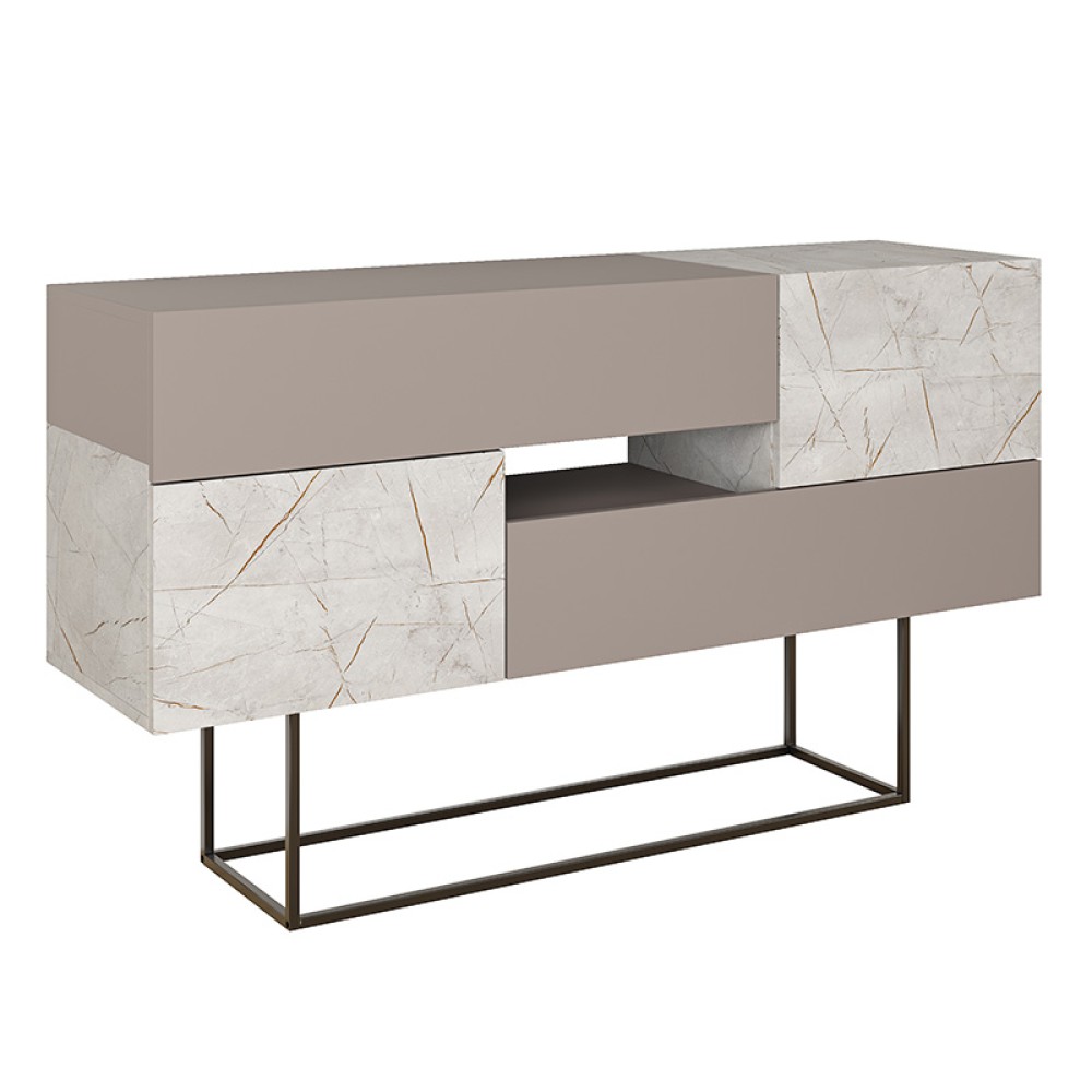 Μπουφές Roberta pakoworld μόκα με γκρι-μπεζ μαρμάρου 145x40x82εκ