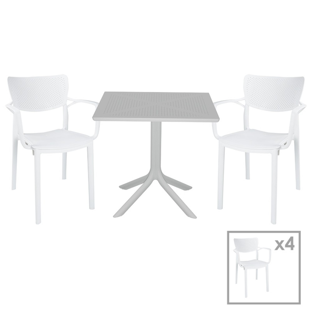 Τραπεζαρία Icon-Fontline pakoworld σετ 5τεμ PP σε λευκή απόχρωση