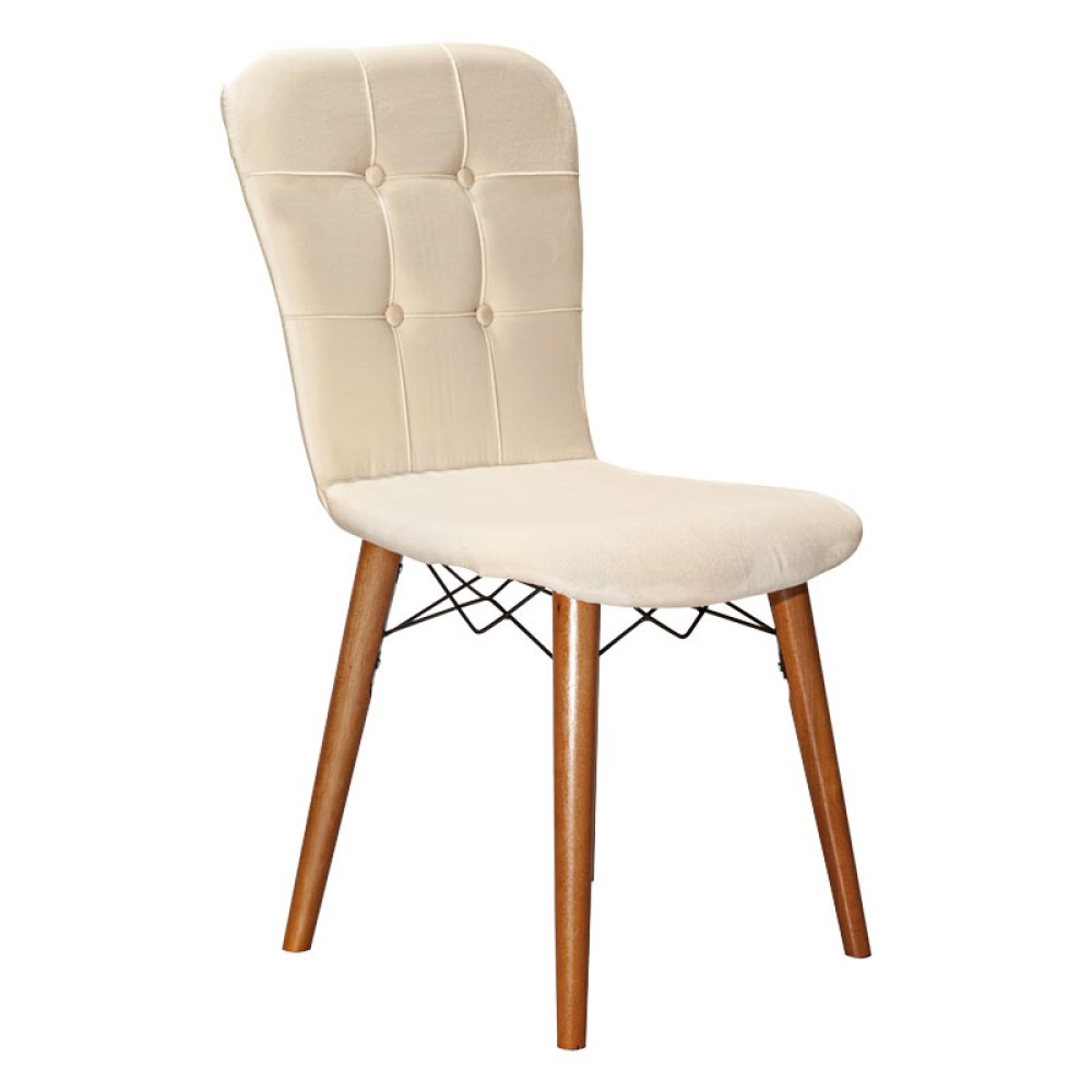 Καρέκλα Sonora I pakoworld βελουτέ εκρού-καρυδί πόδι