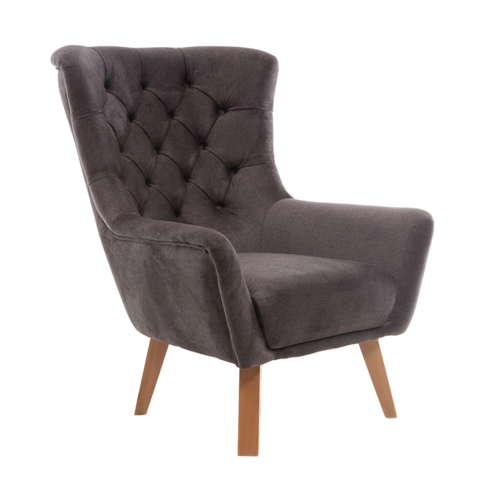 Πολυθρόνα Fluffy pakoworld βελούδο ανθρακί-φυσικό πόδι 75x69x96εκ