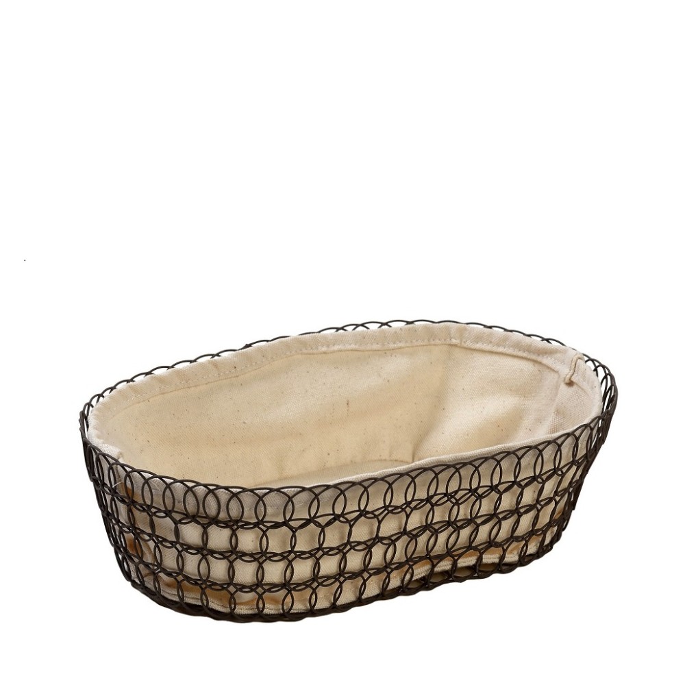 ΜΕΤΑΛΛΙΚΟ ΚΑΛΑΘΙ ΟΒΑΛ L ΜΕ ΛΙΝΟ ΥΦΑΣΜΑ ΜΠΕΖ-ΜΑΥΡΟ 32Χ23Χ10ΕΚ
