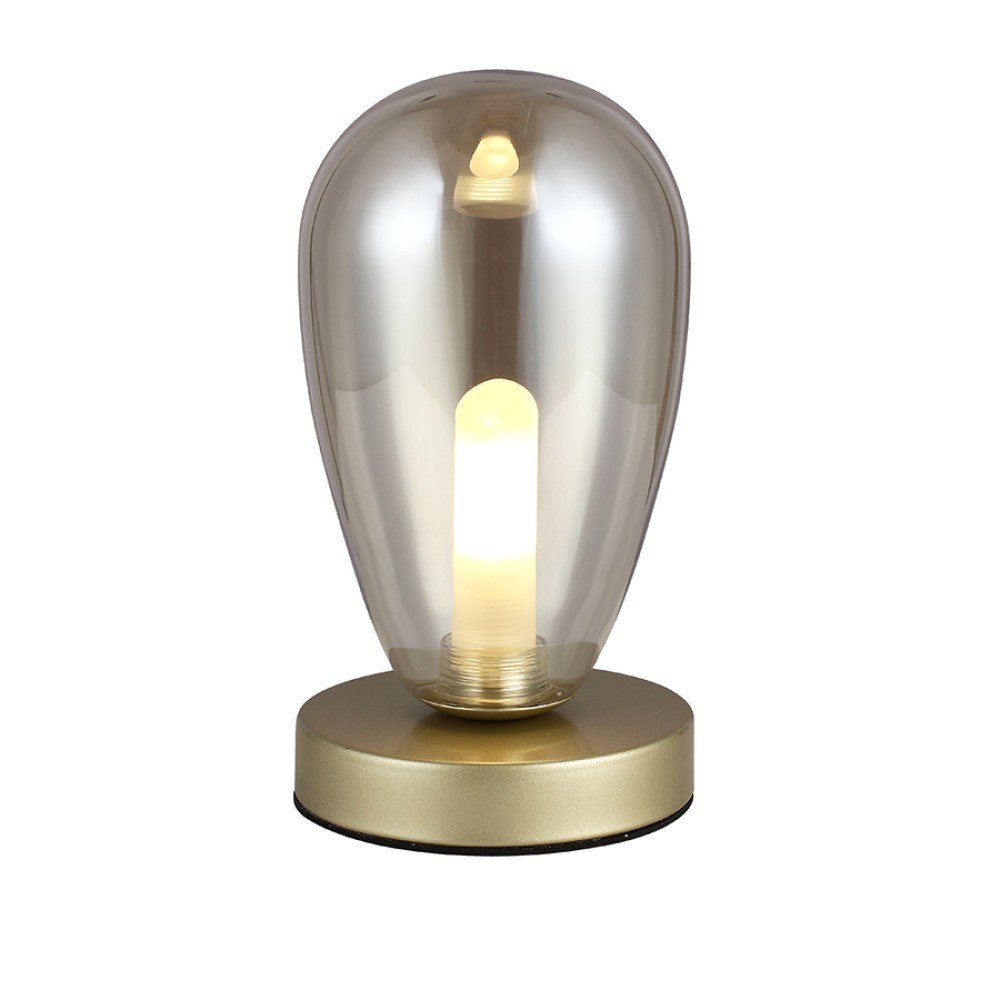 Επιτραπέζιο φωτιστικό πορτατίφ με χειροποίητο γυαλί μελί και βάση σε χρώμα χρυσό ματ.
