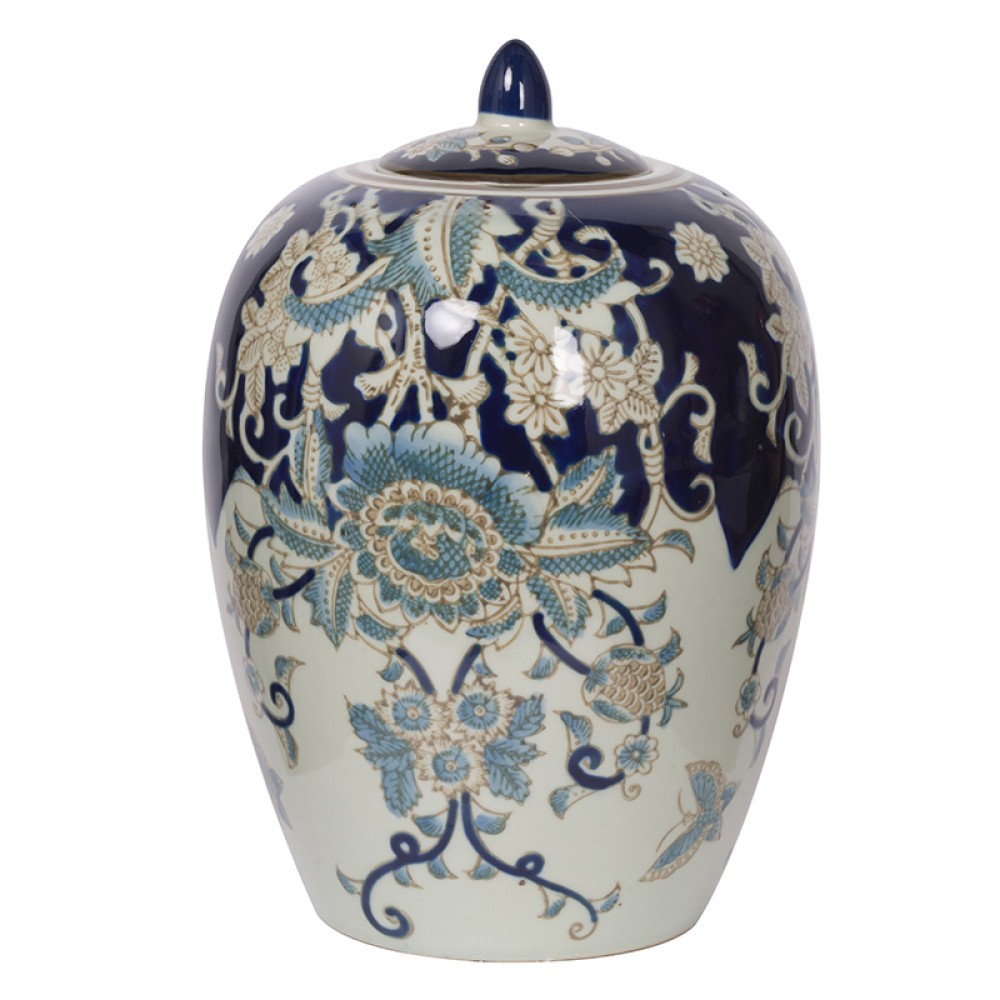 Bryn Βάζο Διακοσμητικό με Καπάκι Πορσελάνης Μπλε