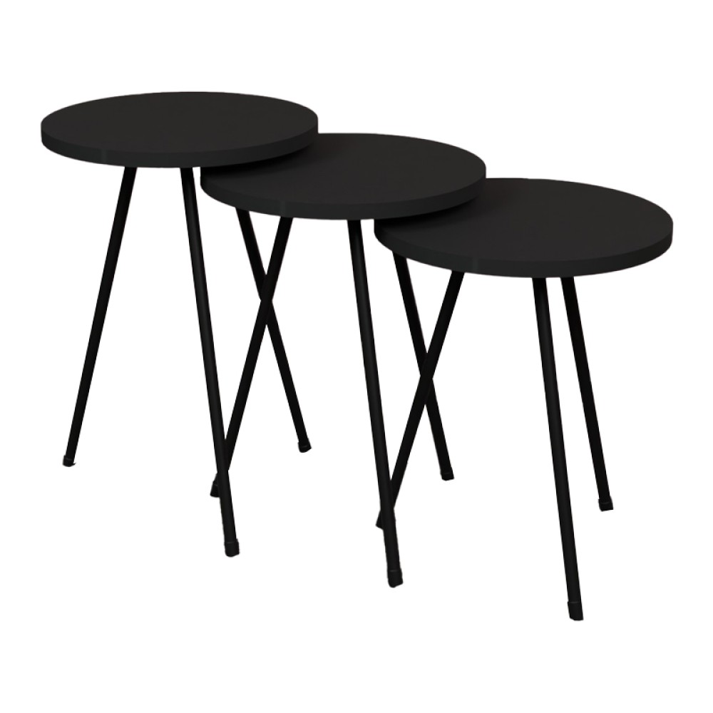 Βοηθητικό τραπέζι Sebko pakoworld σετ 3τεμ ανθρακί μελαμίνης-μαύρο μέταλλο