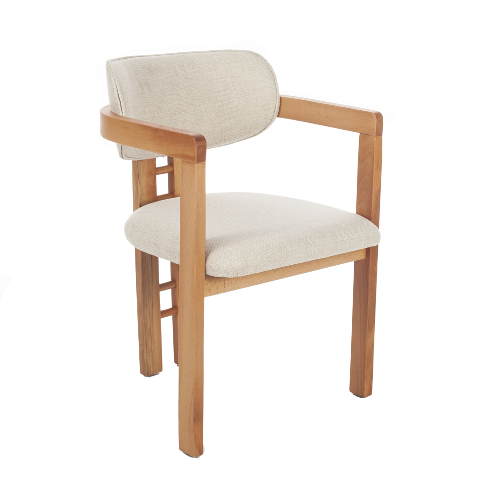Artekko T Model Καρέκλα με Ξύλινο Σκελετό σε Φυσική Απόχρωση και Εκρού Ύφασμα (56x55x80)cm - 56cm x 55cm x 80cm