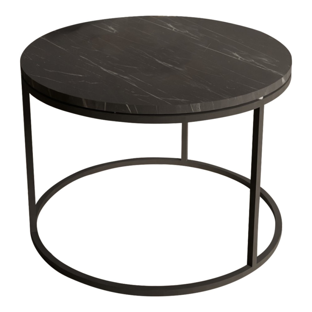 Τραπέζι σαλονιού Drion pakoworld μαύρο μαρμάρου μελαμίνης-μαύρο μέταλλο Φ60x40εκ