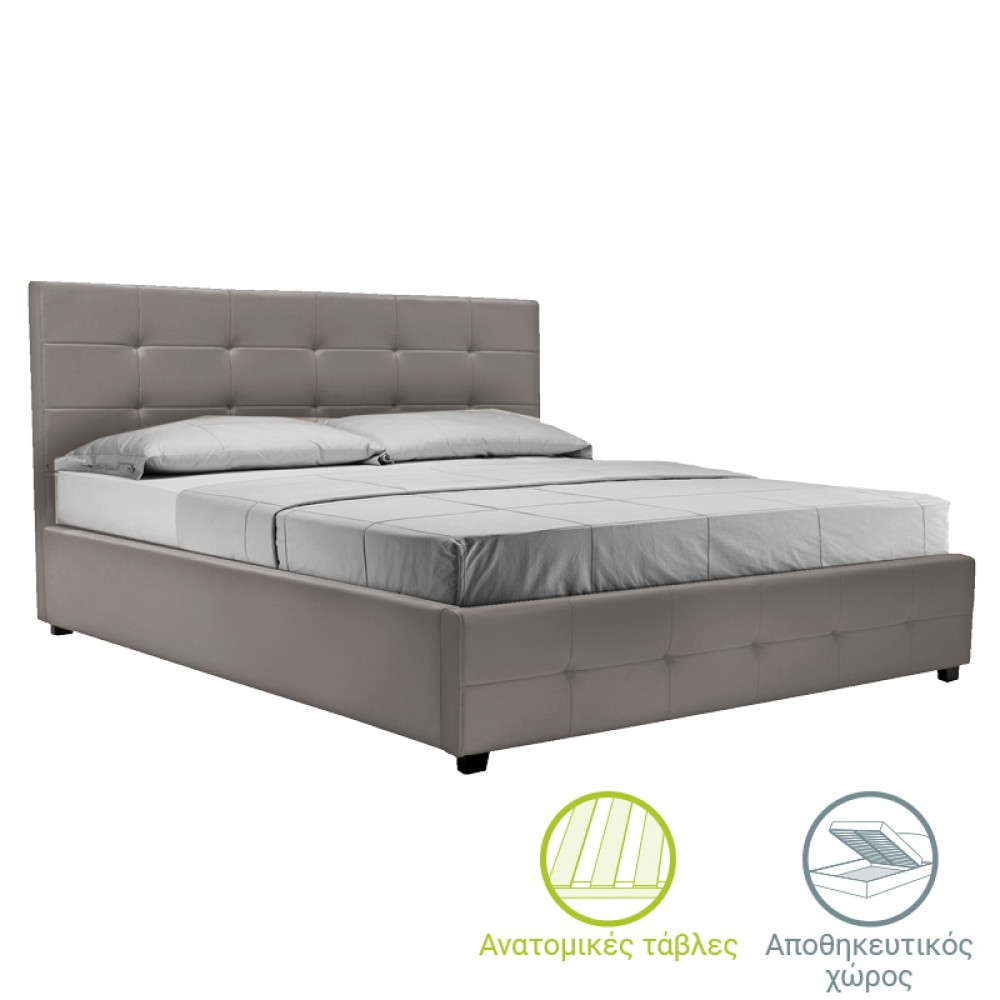 Κρεβάτι Roi pakoworld με αποθηκευτικό χώρο pu γκρι ματ 160x200εκ