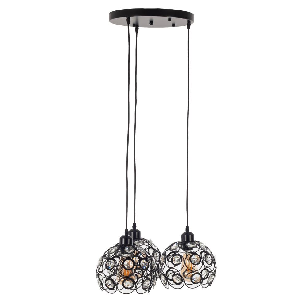 Iron Φωτιστικό Οροφής 3φωτο (Ε27) Μαύρο Μεταλλικό με Κρυσταλλάκια