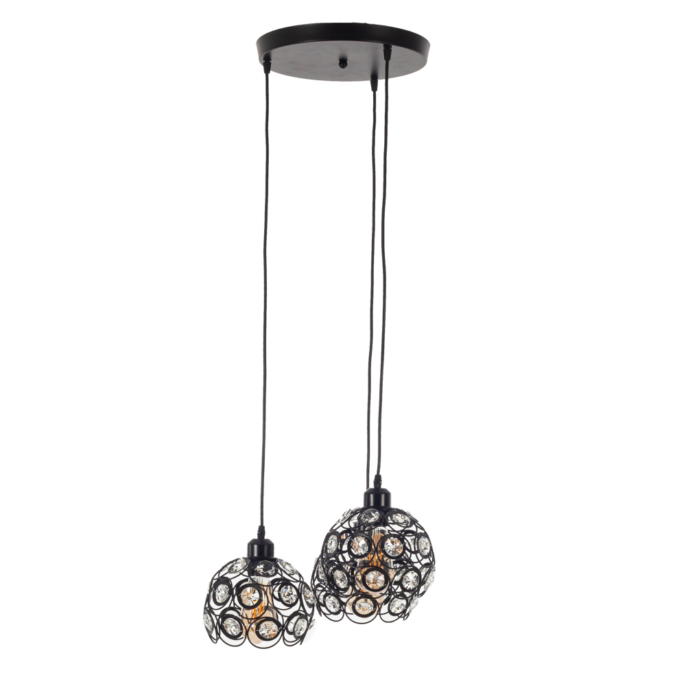 Iron Φωτιστικό Οροφής 3φωτο (Ε27) Μαύρο Μεταλλικό με Κρυσταλλάκια