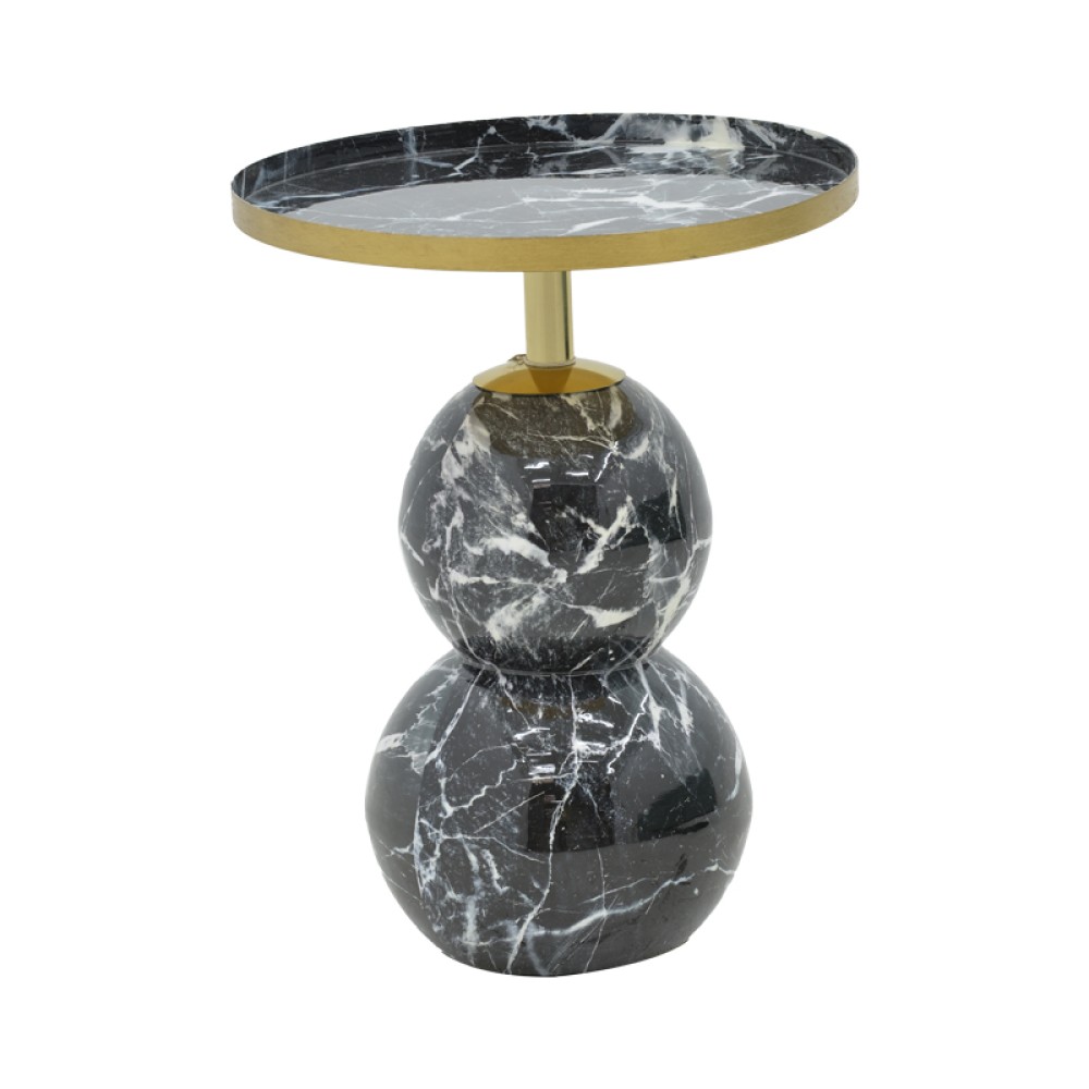 Βοηθητικό τραπέζι Dearest Inart μαυρο μαρμάρου-χρυσό μέταλλο Φ41x57εκ