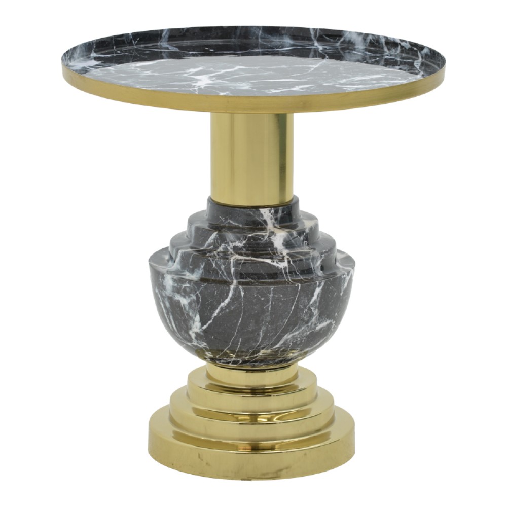 Βοηθητικό τραπέζι Cogent Inart pakoworld μαύρο-χρυσό μέταλλο Φ46x50εκ