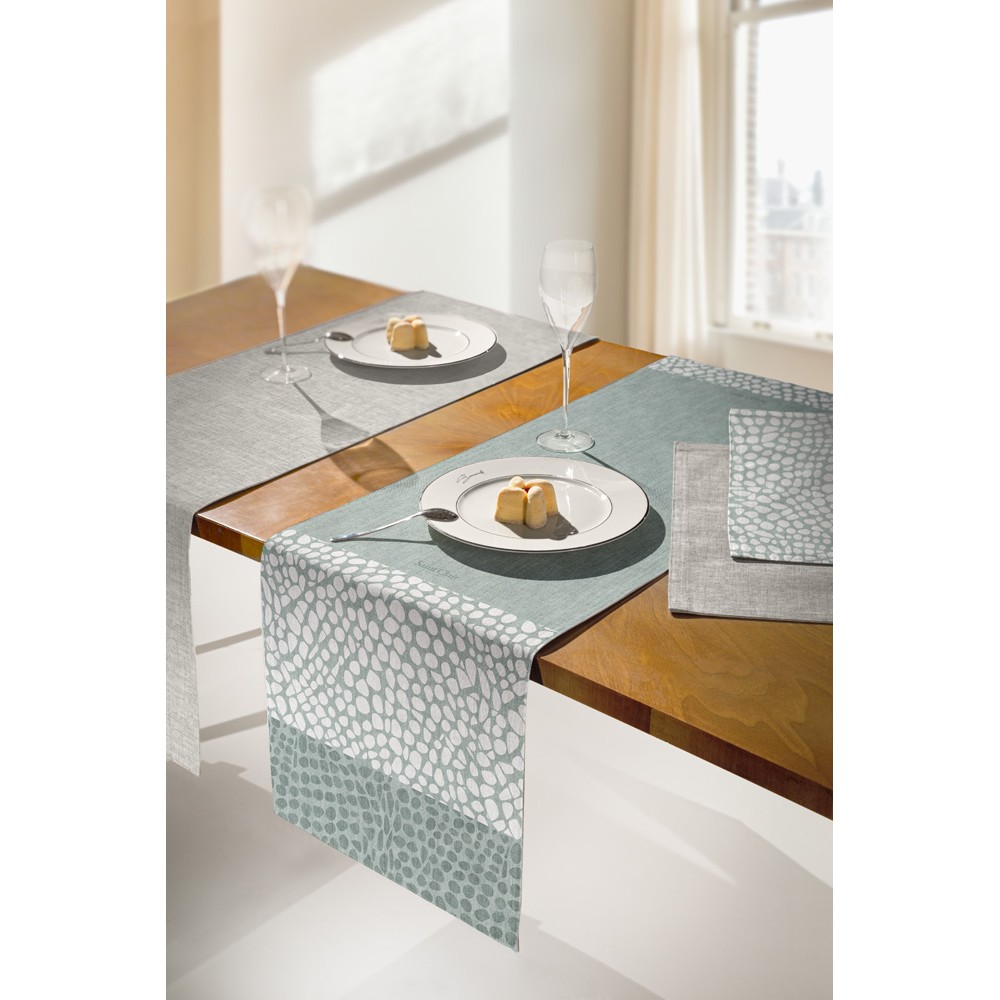 Αλέκιαστη τραβέρσα δύο όψεων της Saint Clair Paris. Σε γκρι απόχρωση από τη μία μεριά και μοντέρνο σχέδιο από την άλλη. Κατασκευασμένη από 100% πολυεστέρα.