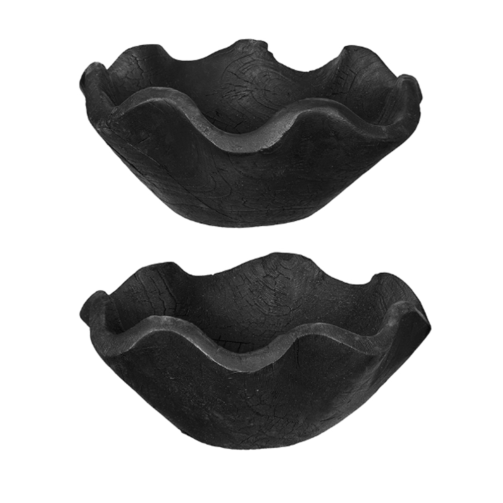 Woody Μπολ Διακοσμητικό από Ξύλο Teak Μαύρο Σετ/2