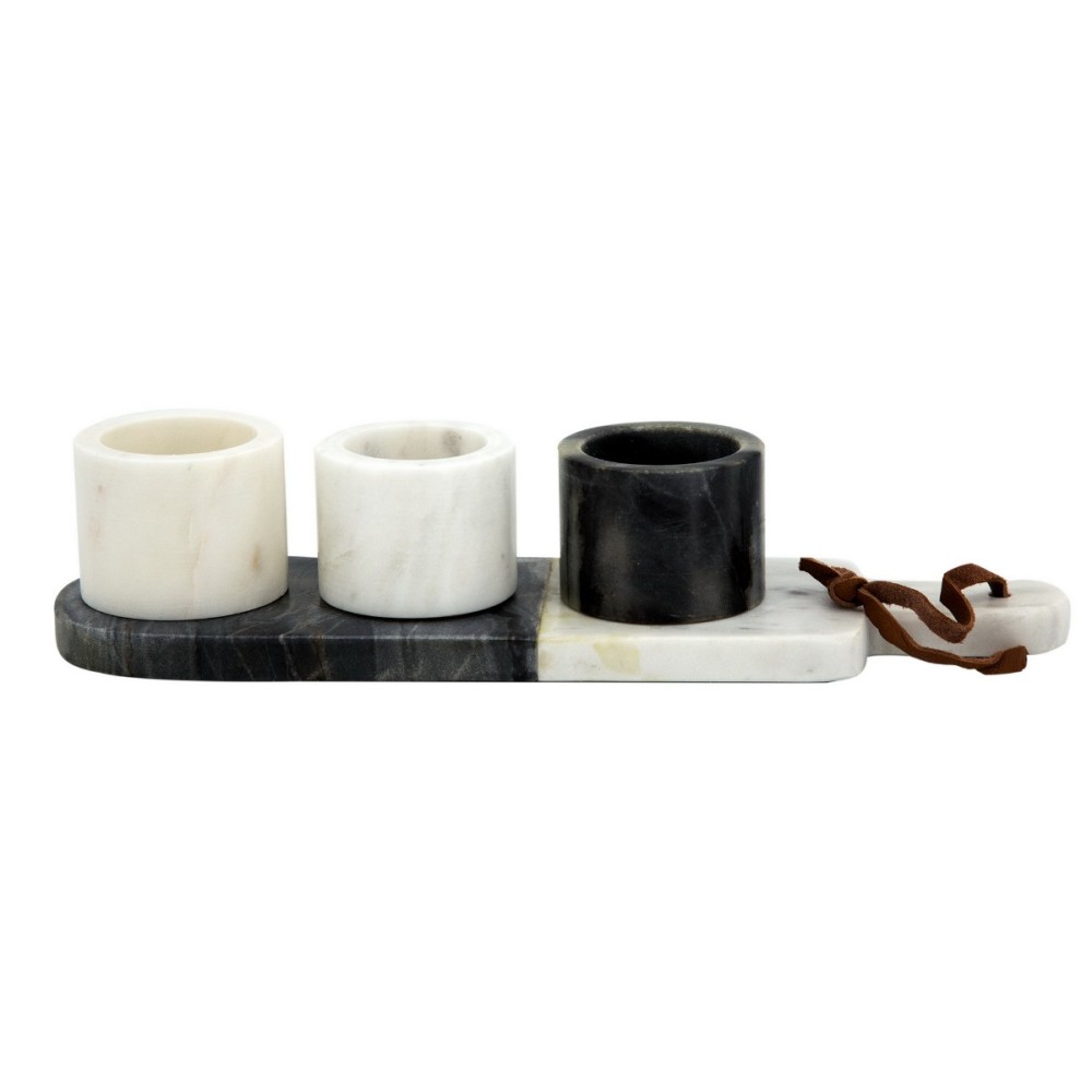 Ketch 3 Δοχεία και Πλατό Μάρμαρο Ασπρόμαυρο Σετ/4