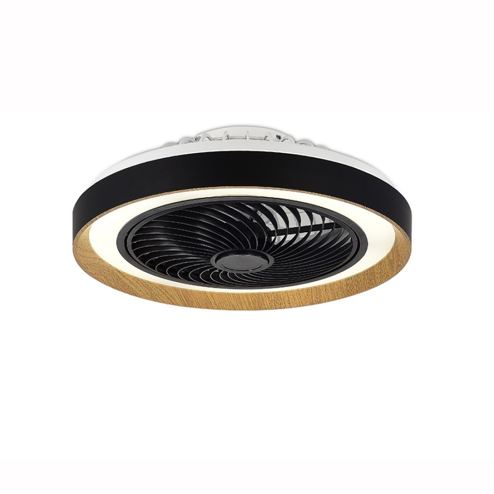Ανεμιστήρας οροφής με φως και DC μοτέρ για αθόρυβη λειτουργεία. Διαθέτει τηλεχειριστήριο και ενσωματωμένο ανεμιστήρα στο κέντρο. Η βάση είναι από αλουμίνιο, σε λευκό χρώμα, ενώ η πλαφονιέρα είναι από PC σε μαύρο χρώμα. Τα πτερύγια είναι ακρυλικά σε διάφανο χρώμα και βρίσκονται στο εσωτερικό του ανεμιστήρα.