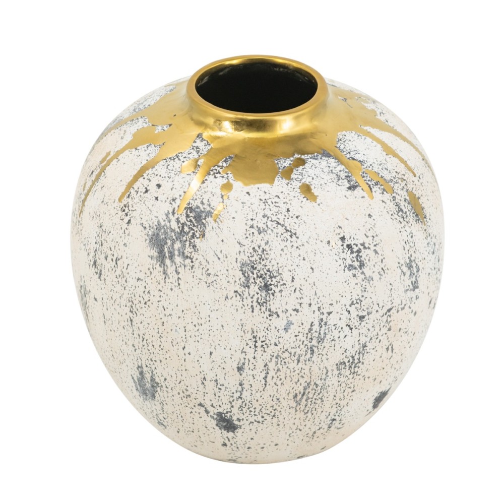 Artekko Kayle Διακοσμητικό Βάζο Κεραμικό Μπεζ Χρυσό (25x25x25)cm - 25cm x 25cm x 25cm