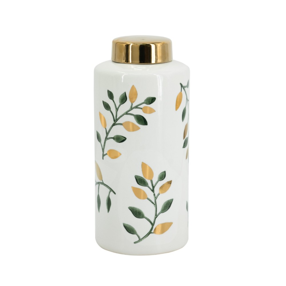 Anivia Διακοσμητικό Βάζο Δοχείο με Καπάκι Κεραμικό Λευκό Χρυσό Πράσινο