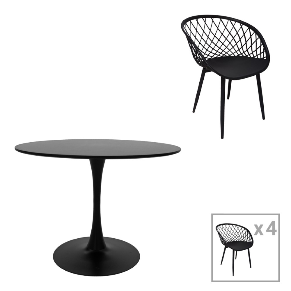 Τραπεζαρία Ezra-Balou pakoworld σετ 5τεμ pp-mdf σε μαύρη απόχρωση Φ100x73εκ