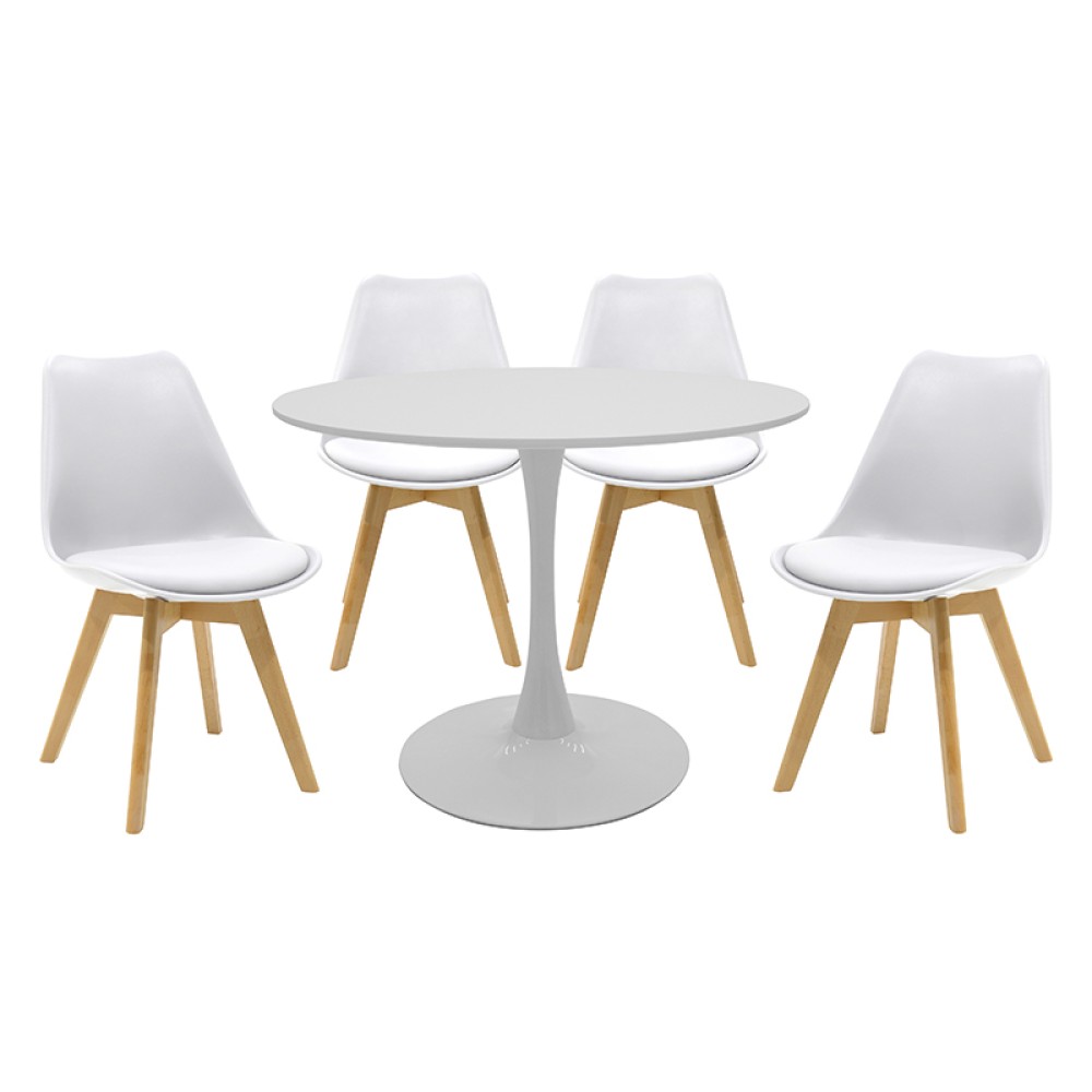 Τραπεζαρία Balou-Gaston σετ 5τεμ pakoworld MDF και pp σε λευκή-φυσική απόχρωση Φ100x73εκ