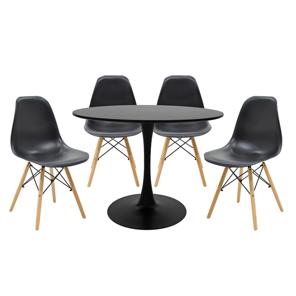 Τραπεζαρία Balou-Julita σετ 5τεμ pakoworld MDF και pp σε μαύρη-φυσική απόχρωση Φ100x73εκ