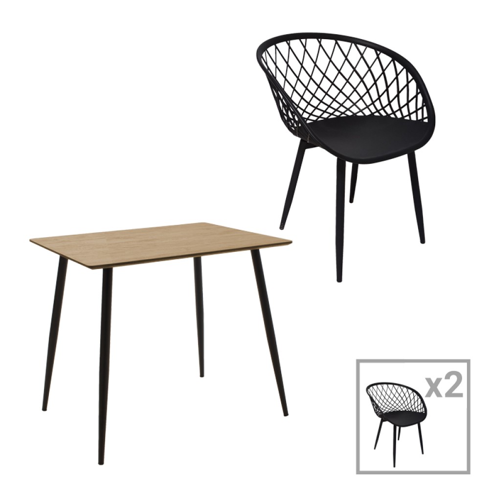Τραπεζαρία Ezra-Cuba pakoworld σετ 3τεμ pp-mdf σε μαύρη-sonoma απόχρωση 70x70x75εκ