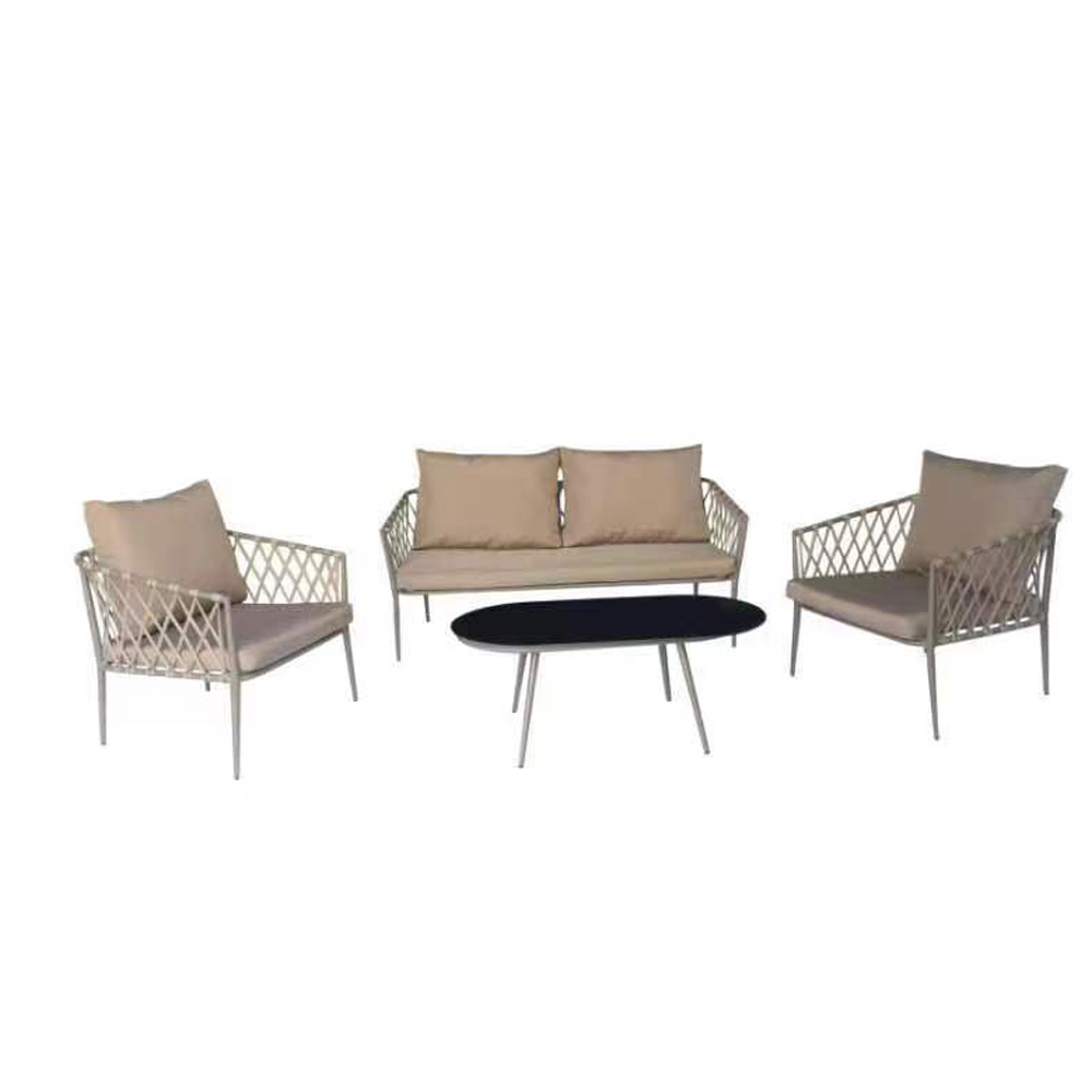Rattan Καναπές 2x Πολυθρόνες Τραπέζι με Τζάμι με Πλαστικ Κορδόνι Μεταλλικό Σκελετό Γκρι