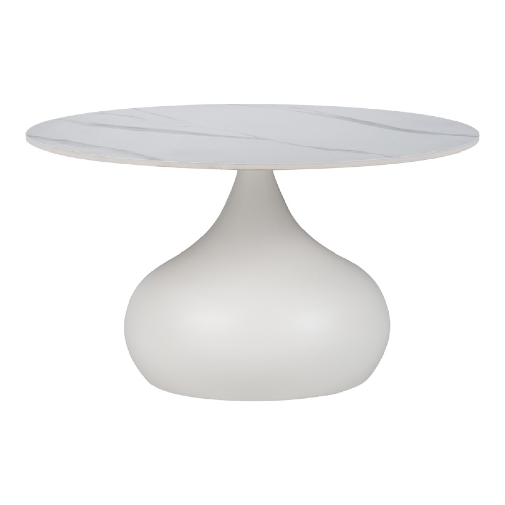 Τραπέζι σαλονιού Kirkene Inart sintered stone σε απόχρωση λευκό μαρμάρου με λευκό μέταλλο Φ70x40εκ